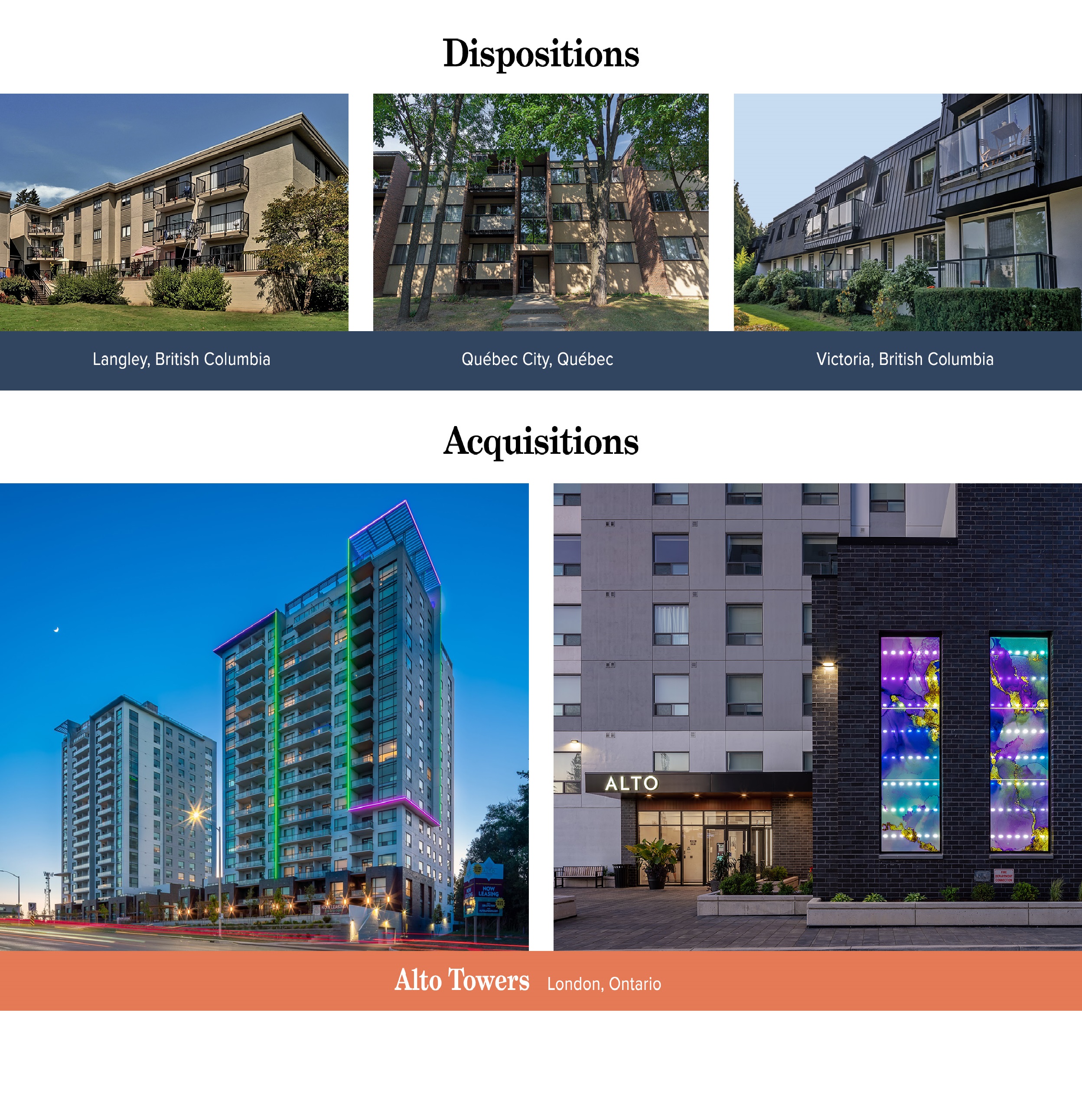 “We’re very pleased with the progress we’ve made on the execution of our strategy in the first quarter of 2024, including our initiatives surrounding the resolution of the Canadian housing supply and affordability crises,” commented Mark Kenney, President and CEO. “These transactions exemplify all facets of that strategy in action. We are proud to have sold two properties to a non-profit organization that will be able to preserve the long-term affordability of those suites, which are situated in one of Canada’s least affordable markets. We are very happy to have been able to work with the BC RPF on these important transactions. Simultaneously, we are supporting the supply of new housing for Canadians by investing in purpose-built rental apartments, such as the buildings we’ve just acquired in an attractive and growing region in southwestern Ontario. In turn, this is encouraging incremental residential development in key metropolitan areas throughout Canada.”